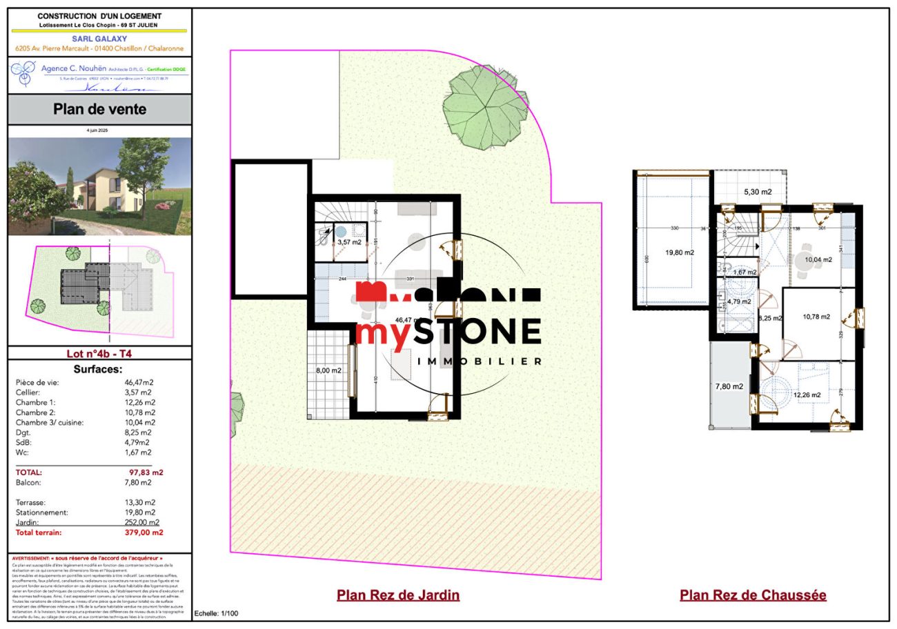 SAINT JULIEN – villa neuve en BRS – frais de notaire réduits maison neuve de 97 m² habitable sur 378 m² de terrain clos et paysagé. Maison disposant d’une belle pièce de vie avec 3 chambres et une salle de bains. Maison avec des prestations haut de gamme : volets roulants, garage motorisé, débord de toit PVC, système de chauffage par pompe à chaleur avec climatisation dans la partie vie. La maison est livrée prête à habiter (mur prépeint en blanc), il ne reste plus qu’à prévoir une cuisine équipée. Le terrain est engazonné et clos. Nadine VIRICEL (EI) Agent Commercial – Numéro RSAC : 842 735 664 – Bourg en Bresse.