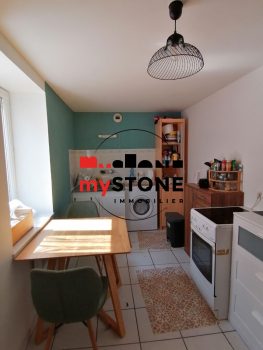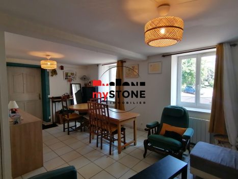 LANTIGNIE – au coeur du village, Appartement avec entrée indépendante au 1er étage d’une petite copropriété de 4 lots. L’entréee donne sur une pièce de vie de 27 m² avec une cuisine indépendante, une chambre avec placard de 11.37 m², une salle de bains et un WC indépendant. Une cave privative en sous sol complète le bien. Le chauffage est électrique. L’appartement n’a pas de balcon, le stationnement se fait dans la rue. Libre de suite : N’hésitez pas à nous contacter pour venir le visiter ! Copropriété de 6 lots – dont 4 lots habitation. (Pas de procédure en cours). Charges annuelles : 240 euros.
